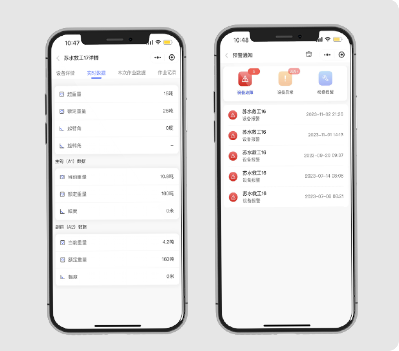 通過(guò)4G無(wú)線傳輸技術(shù),實(shí)時(shí)獲取力矩限制器、幅度傳感器,高度傳感器,風(fēng)速傳感器,能源電耗等數(shù)據(jù)指標(biāo),并通過(guò)可視化界面展示,方便管理者快速做出準(zhǔn)確的決策。